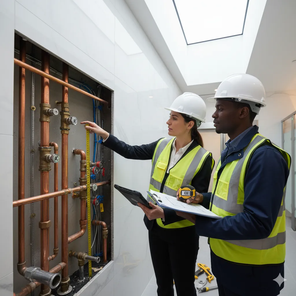 After rough plumbing but before walls close: This is your last easy opportunity to verify pipe routing, slope, connections, and support. I physically trace every drain and supply line, verify cleanout access, check slope with levels, and test fit with fixtures. Finding a drainage issue here requires perhaps two hours of re-piping. Finding it after walls are finished requires demolition and reconstruction.